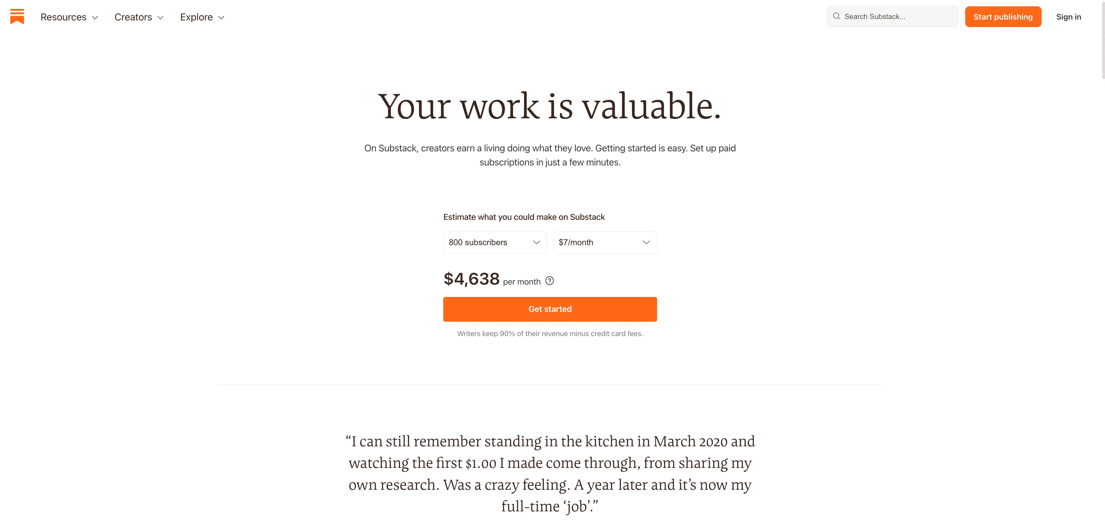 - Substack: Monetize with paid subscriptions. It’s easy to set up, but the 10% cut adds up. No ads or referral programs, so you’re limited to subs.