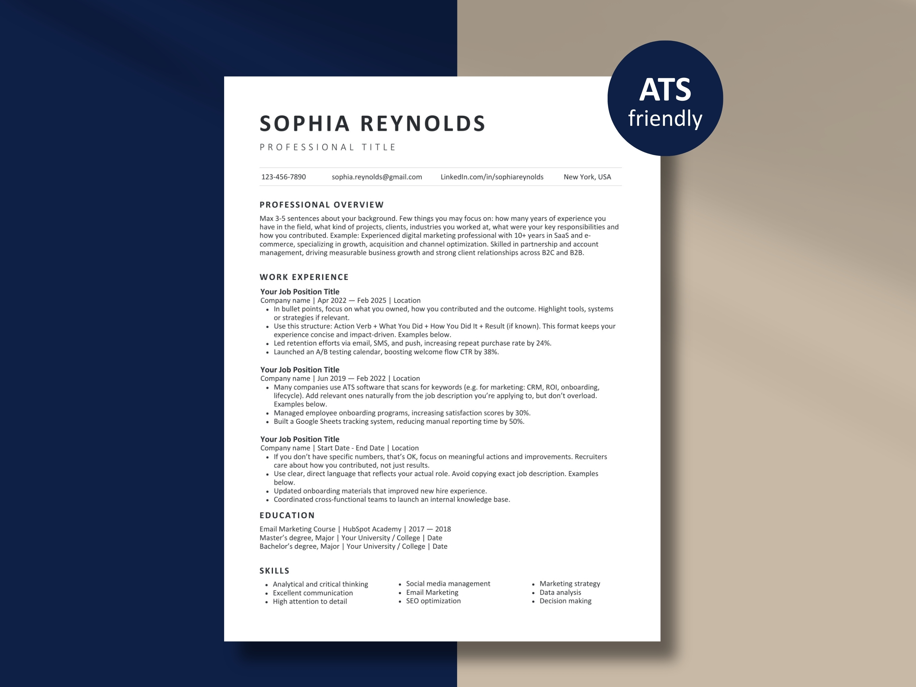 This is the professional ATS-friendly resume template I recommend first to almost anyone actively job hunting right now. It is designed from the ground up to pass ATS screening no text boxes, no parser-breaking columns, no graphic elements that cause automated systems to skip your skills section entirely. What the scanner sees is a clean, structured document. What the hiring manager sees is a polished, modern resume that looks sharp without trying too hard.
